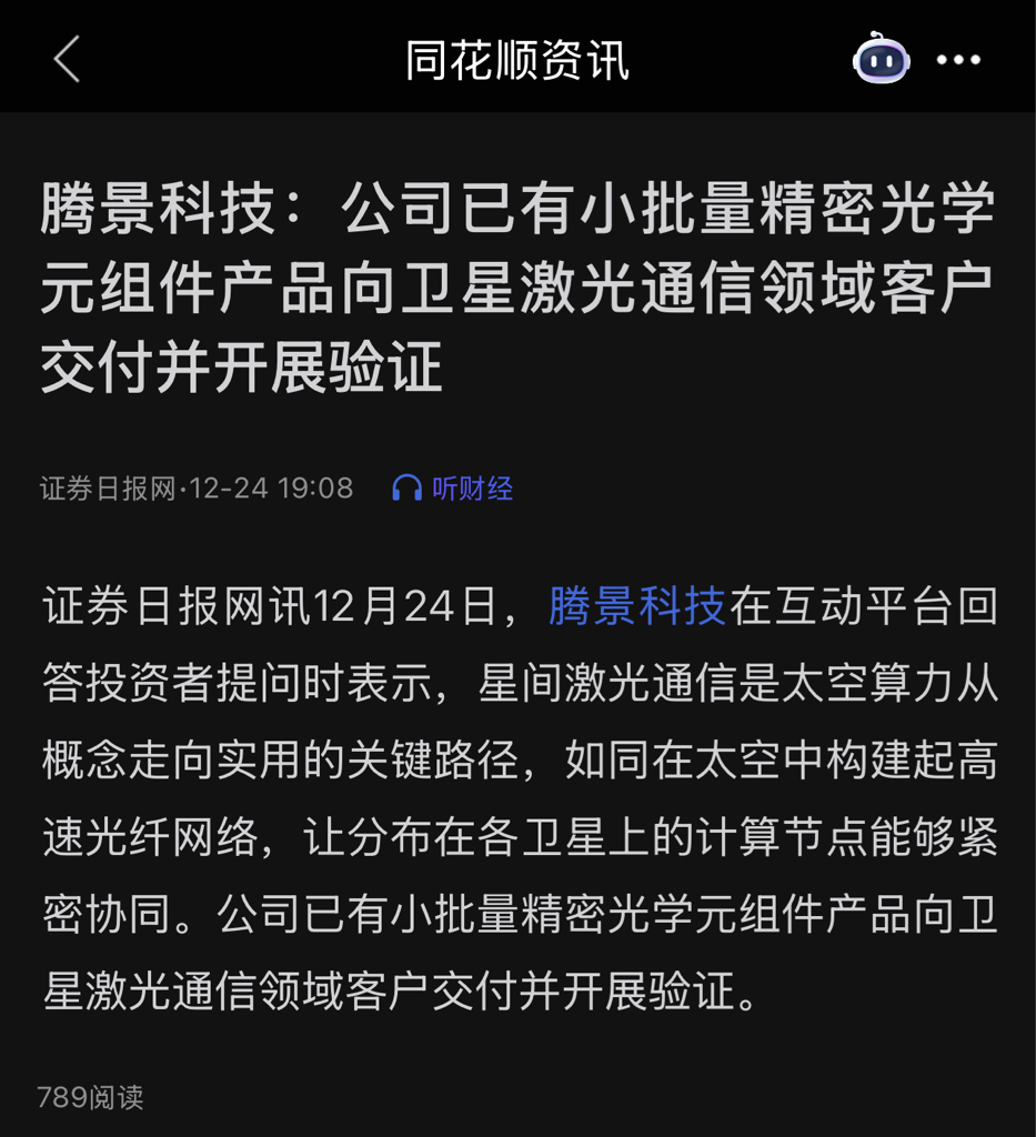 $腾景科技(SH688195)$ CPO+OCS+卫星激光通信+光引擎+商业航天+太空算力+无人驾驶+福建。必须还能上涨,要有信仰。全是风口。目标250