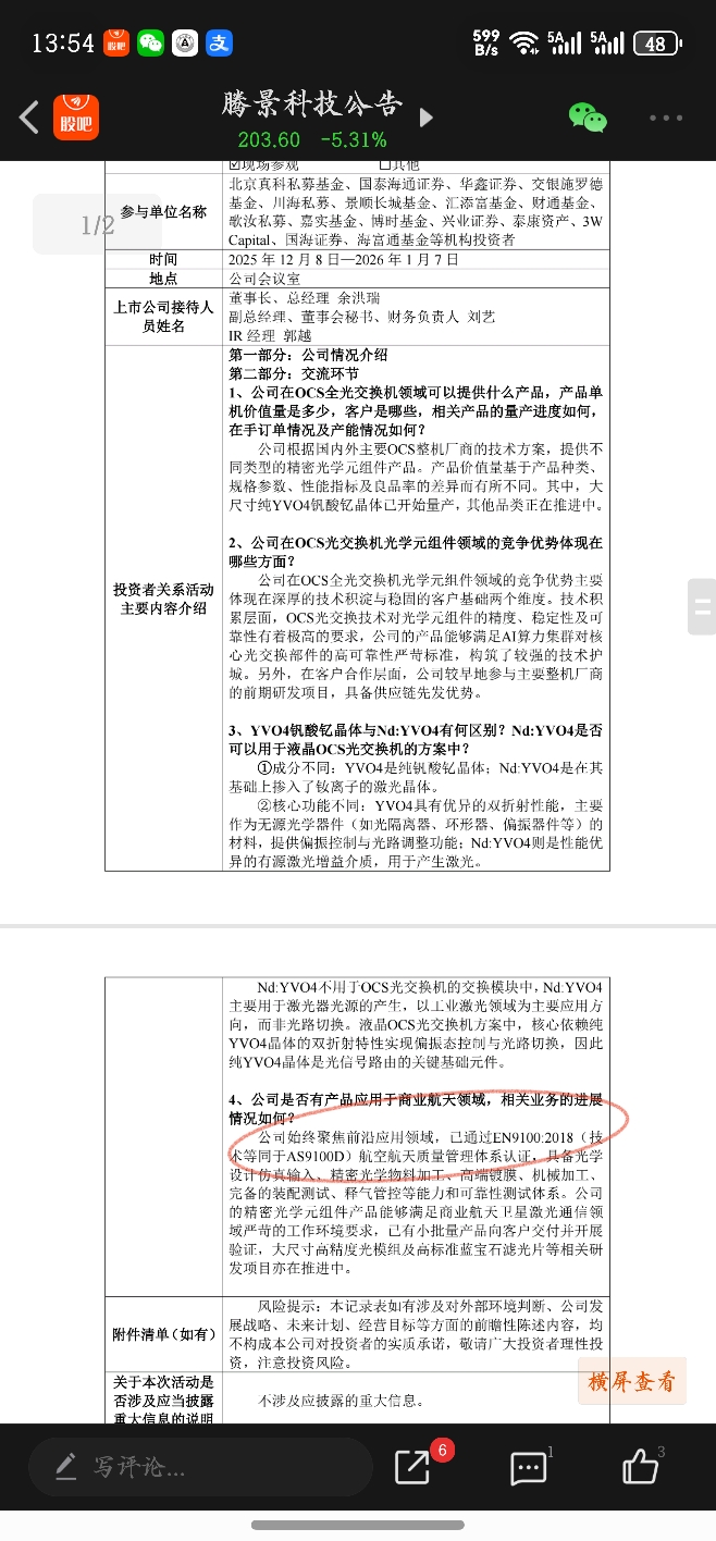 $腾景科技(SH688195)$ 公司持有航空航天认证资质,是实实在在地横跨光通讯和商业航天两大热门赛道,这样的标的还是比较少吧?