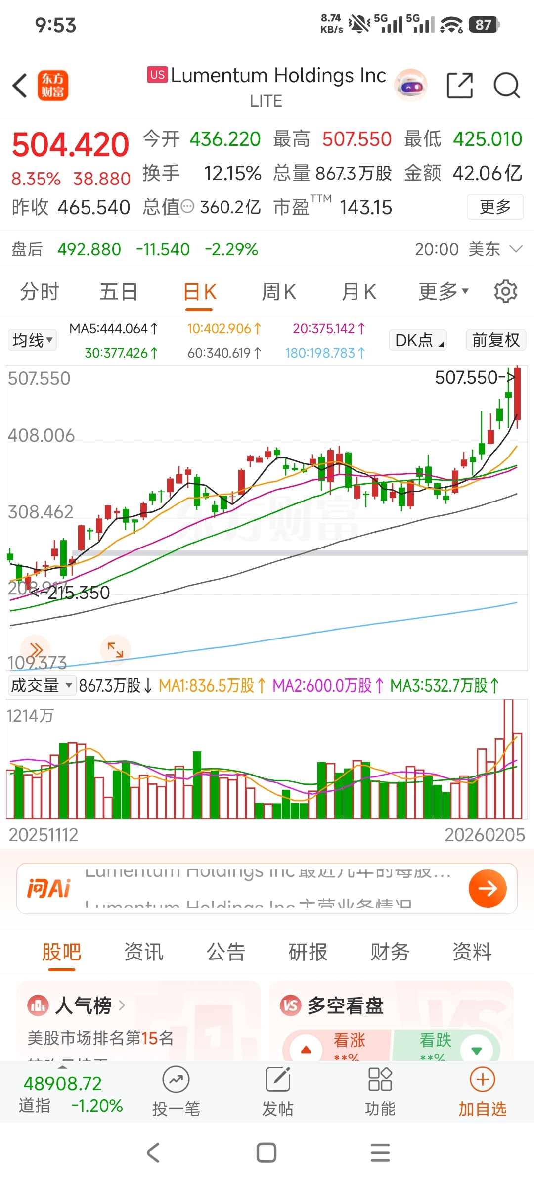 $腾景科技(SH688195)$ LITE大涨,腾景你别装了