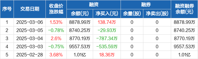 卓越新能:融资净买入138.74万元,融资余额8878.99万元(03-06)