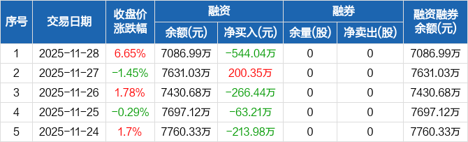 卓越新能:融资净偿还544.04万元,融资余额7086.99万元(11-28)