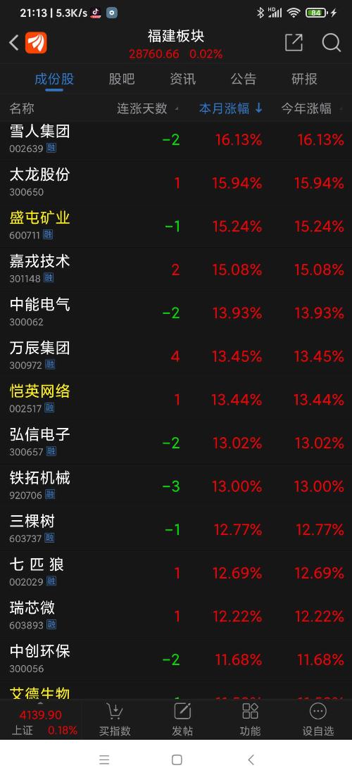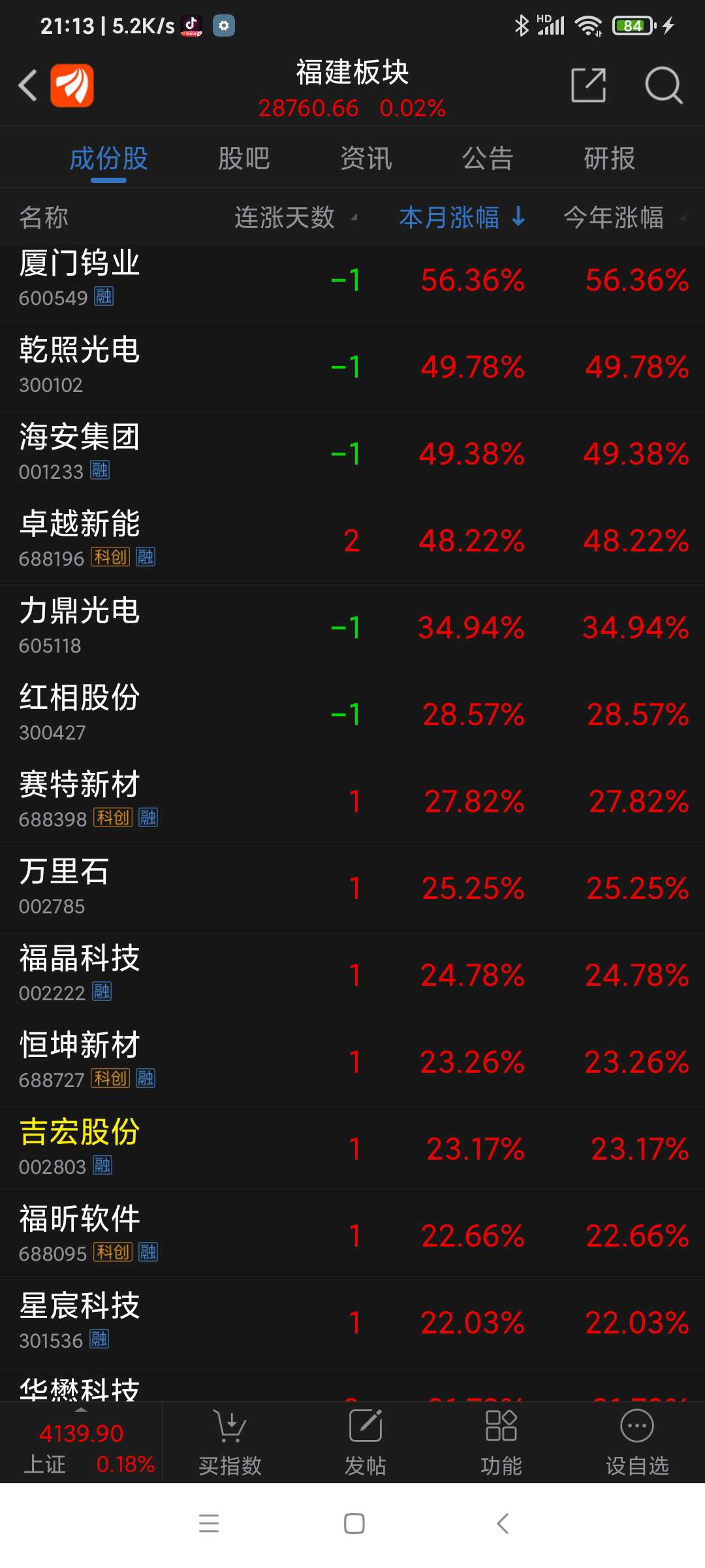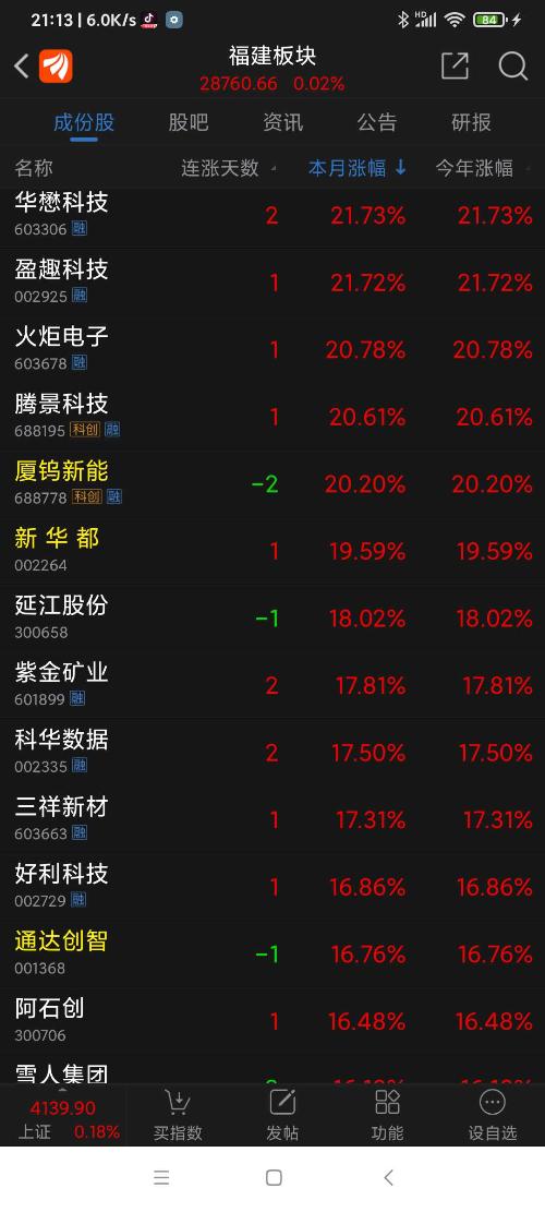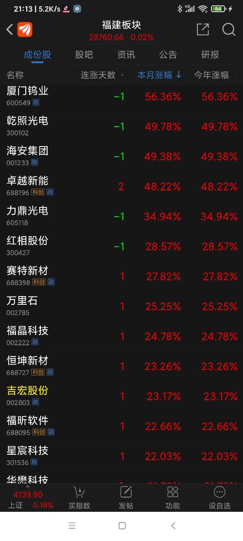 卓越新能连涨两天,收盘列1月份福建板块涨幅第四名。
