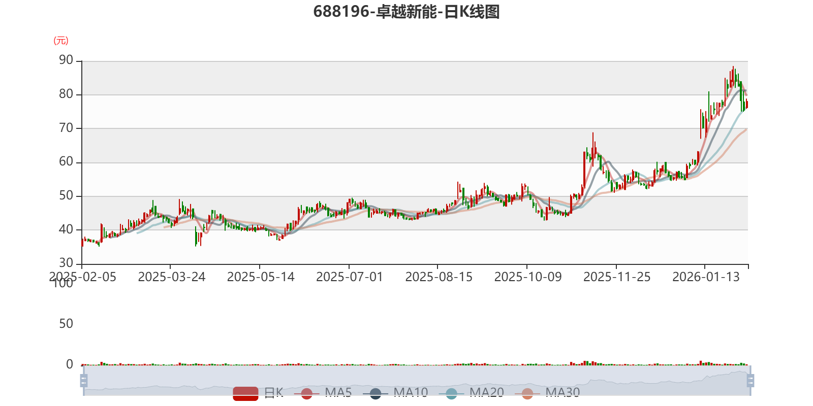 中证智能财讯卓越新能(688196)2月3日晚间披露2025年业绩快报,公司实现营业收入29.42亿元,同比下降17.43%;归母净利润1.7亿元,同比增长14.16%;扣非净利润1.9亿元,同比增长40.95%;基本每股收益1.4元,加权平均净资产收益率为5.88%。以2月3日收盘价计算,卓越新能目前市盈率(TTM)约为58.31倍,市净率(LF)约3.1倍,市销率(TTM)约3.38倍。