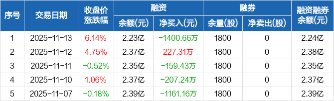 佰仁医疗:融资净偿还1400.66万元,融资余额2.23亿元(11-13)