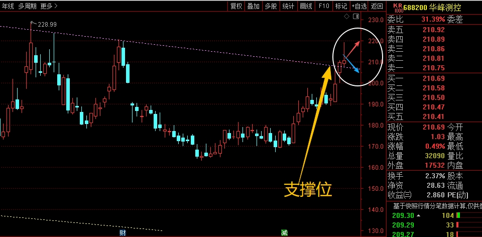 $华峰测控(SH688200)$ 近期走势非常强势,连续拉升后,已经回到了前期高位附近,今天冲高回落,明显受阻,接下来就看脚底趋势线的支撑情况,能稳住,继续拉伸给没问题,但如果站不稳,回落下来就要注意短线的调整了,可以控制仓位应对,前期低吸的可以高抛作差,不纠结。#炒股日记# #收盘点评#