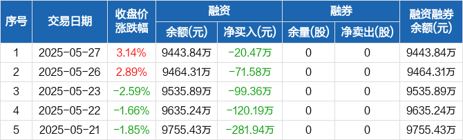 信安世纪:连续5日融资净偿还累计593.53万元(05-27)