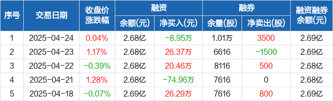 美迪西:融资净偿还8.95万元,融资余额2.68亿元(04-24)