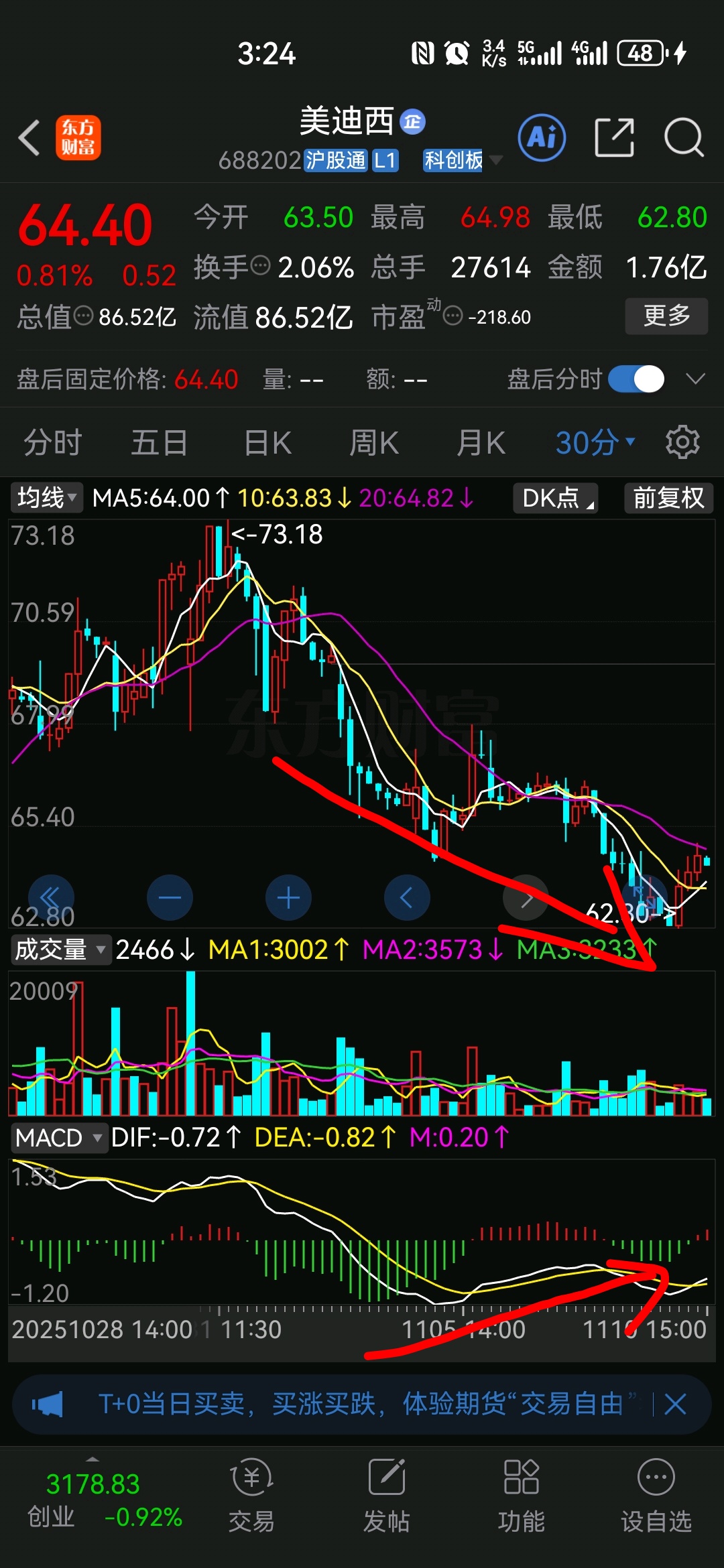 $美迪西(SH688202)$ 底背离了,先买入半仓
