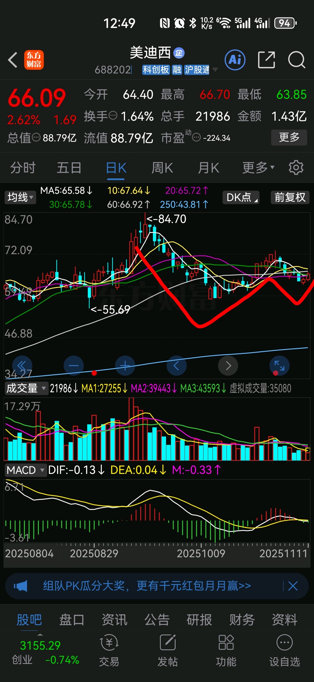 $美迪西(SH688202)$ 收盘站稳65的话,日线级别2买形成,后市可以高看一线