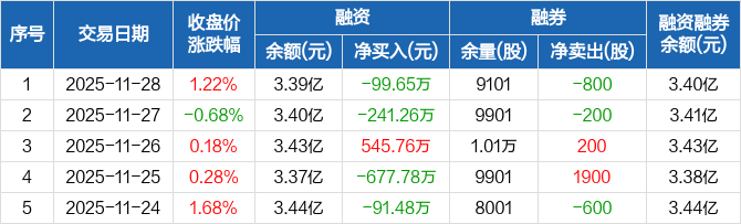 美迪西:融资净偿还99.65万元,融资余额3.39亿元(11-28)