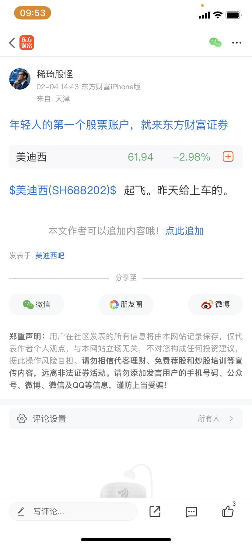 温馨提示: 1.根据《证券法》规定,禁止编造、传播虚假信息或者误导性信息,扰乱证券市场;2.用户在本社区发表的所有资料、言论等仅代表个人观点,与本网站立场无关,不对您构成任何投资建议。用户应基于自己的独立判断,自行决定证券投资并承担相应风险。《东方财富社区管理规定》