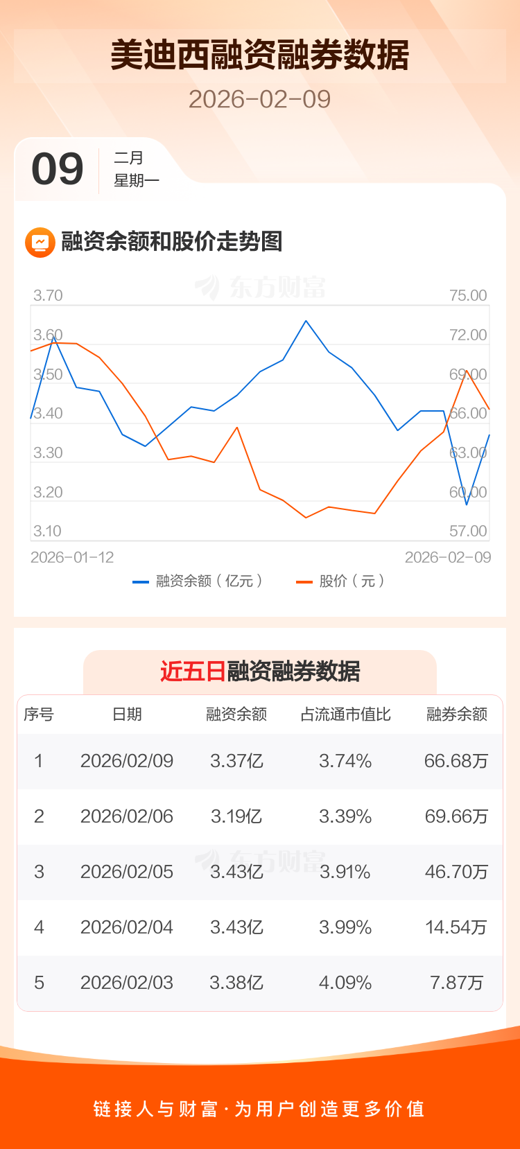 交易所最新数据显示,美迪西于2026年2月9日获融资买入4396.72万元,融资偿还2593.76万元,当日融资净买入1802.96万元。目前,该股融资余额3.37亿,占流通市值比例为3.74%。