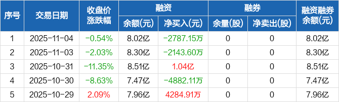 德科立:融资净偿还2787.15万元,融资余额8.02亿元(11-04)