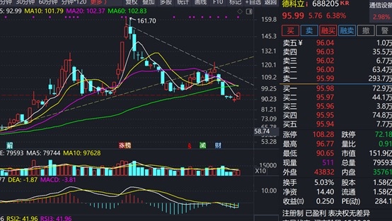 德科立自八月末开始走出了一个m头,在颈线位置窄幅震荡三天后今天上涨,站上ma5的