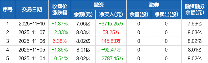 德科立:融资净偿还3715.25万元,融资余额7.66亿元(11-10)