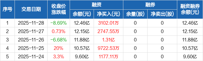 德科立:融资余额12.46亿元,创历史新高(11-28)
