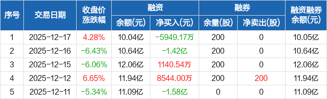 德科立:融资净偿还5949.17万元,融资余额10.04亿元(12-17)