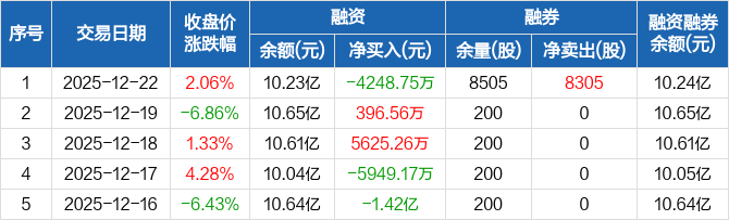 德科立:融资净偿还4248.75万元,融资余额10.23亿元(12-22)