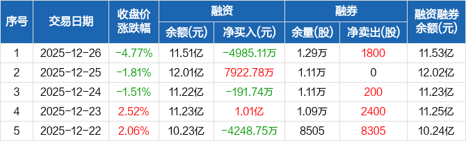 德科立:融资净偿还4985.11万元,融资余额11.51亿元(12-26)