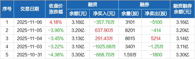 概伦电子:融资净偿还357.76万元,融资余额3.16亿元(11-06)