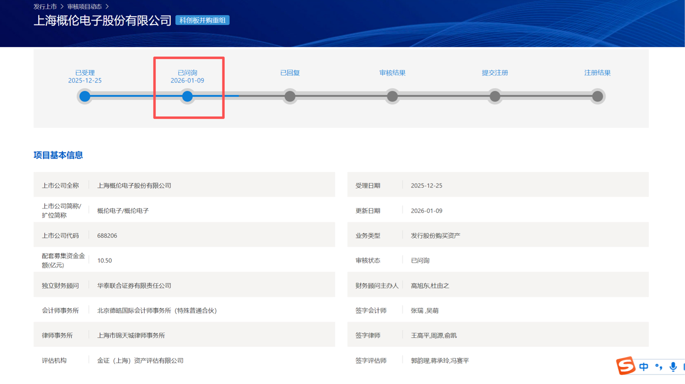 $概伦电子(SH688206)$ 概伦电子并购项目状态更新为已问询