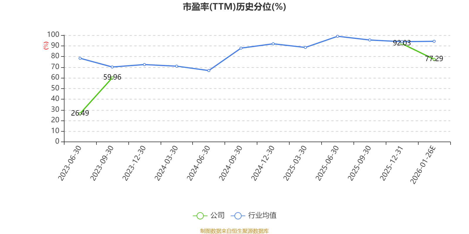 市盈率、市净率为负时,不显示当期分位数,会导致折线图中断。