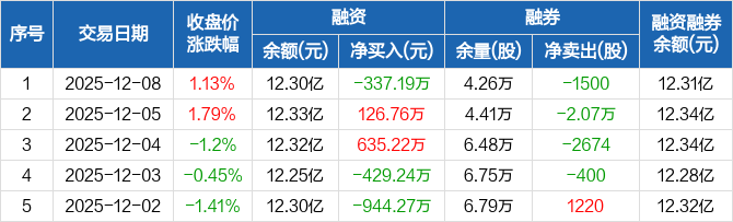 道通科技:融资净偿还337.19万元,融资余额12.3亿元(12-08)