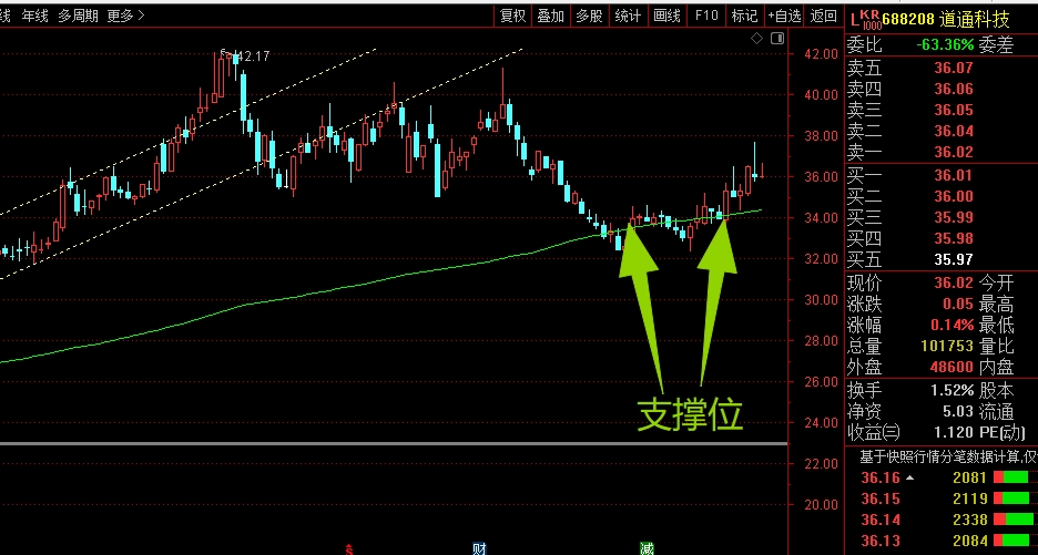 $道通科技(SH688208)$ 中期趋势走得比较强,近期高位调整下来,在大均线位置得到了支撑,整体效果还行,接下来就继续观察能否持续震荡拉高吧,同时脚底大均线34.36位置作为防守位来应对,但凡有效跌破就要严格控制仓位应对,防着破位下杀的风险。#炒股日记# #收盘点评#