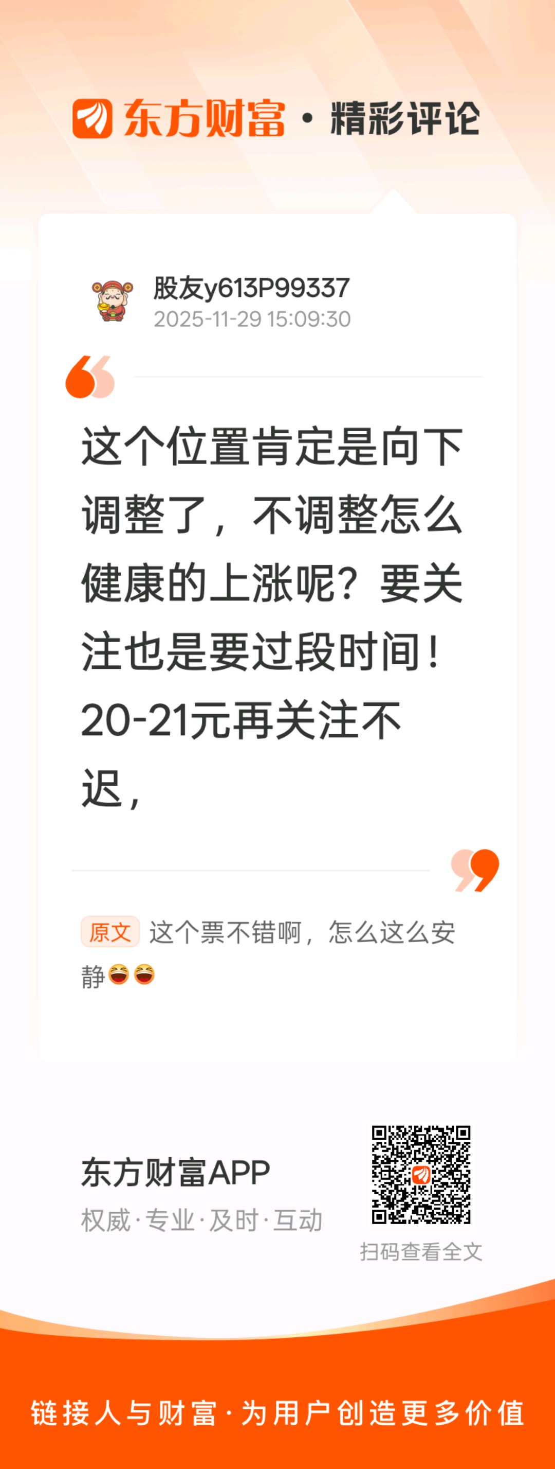 聪明人//@股友y613P99337 :这个位置肯定是向下调整了,不调整怎么健康的上涨呢?要关注也是要过段时间!20-21元再关注不迟,