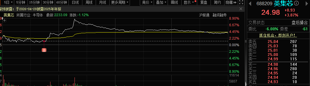 冲高大幅回落,不及预期。今日早盘已经买入。该股上市三年余,最高价31元左右,发行价24.23元。后市