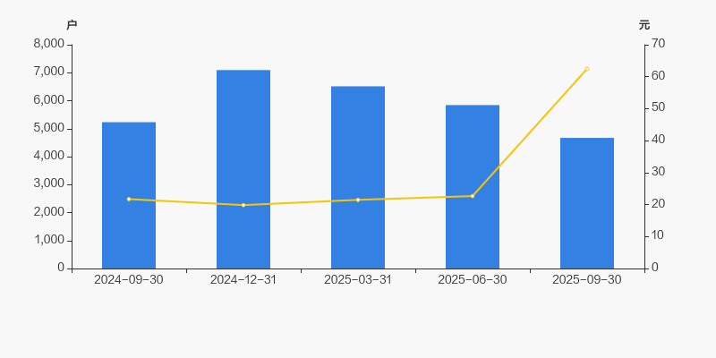 自2024年12月31日以来,公司股东户数连续3期下降,截至目前减幅为34.17%。2024年12月31日至2025年9月30日区间股价上涨214.87%。