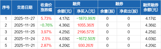 统联精密:融资净偿还1870.99万元,融资余额4.17亿元(11-27)