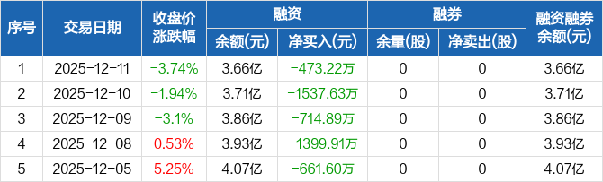 统联精密:连续5日融资净偿还累计4787.25万元(12-11)