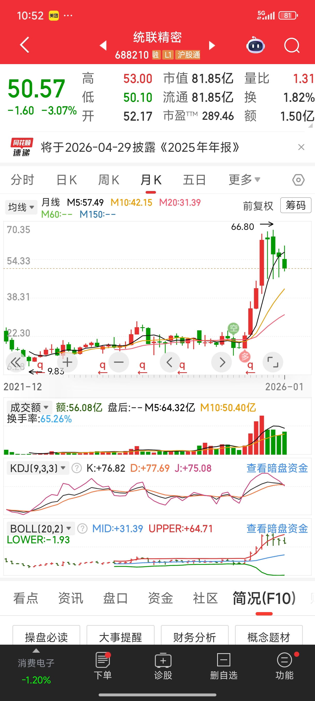 $统联精密(SH688210)$ 外面热点轮番上阵,待在统联股民己经4个月未赚到钱了,看这情况元月份又要收阴线,月线4连阴,庄真够dog。难得一见。整个趋势向下,老乡别买。