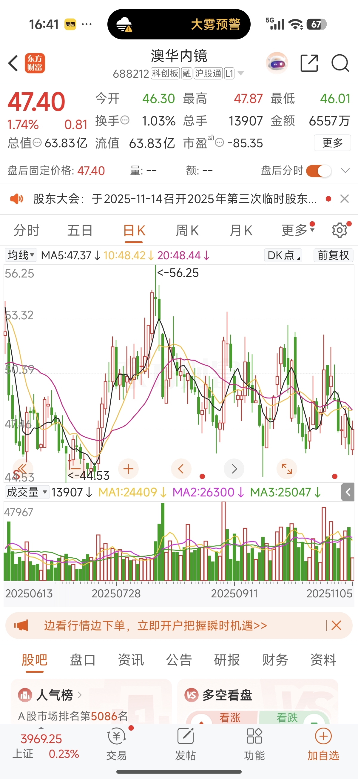 $澳华内镜(SH688212)$ 好恶心的走势图