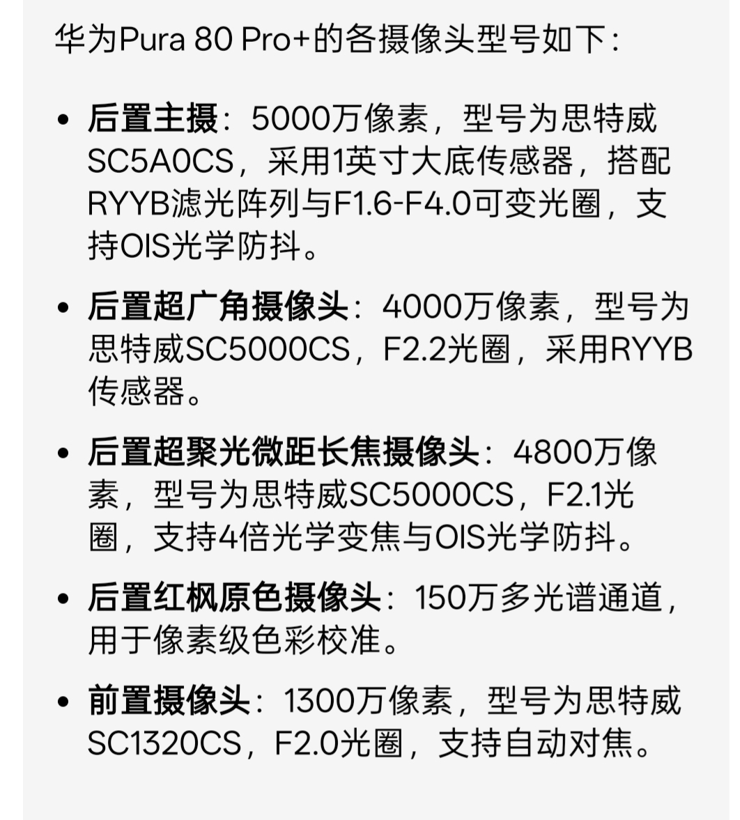 华为pura80pro+摄像头差不多全采用思特威的,思特威现在这么牛了吗?
