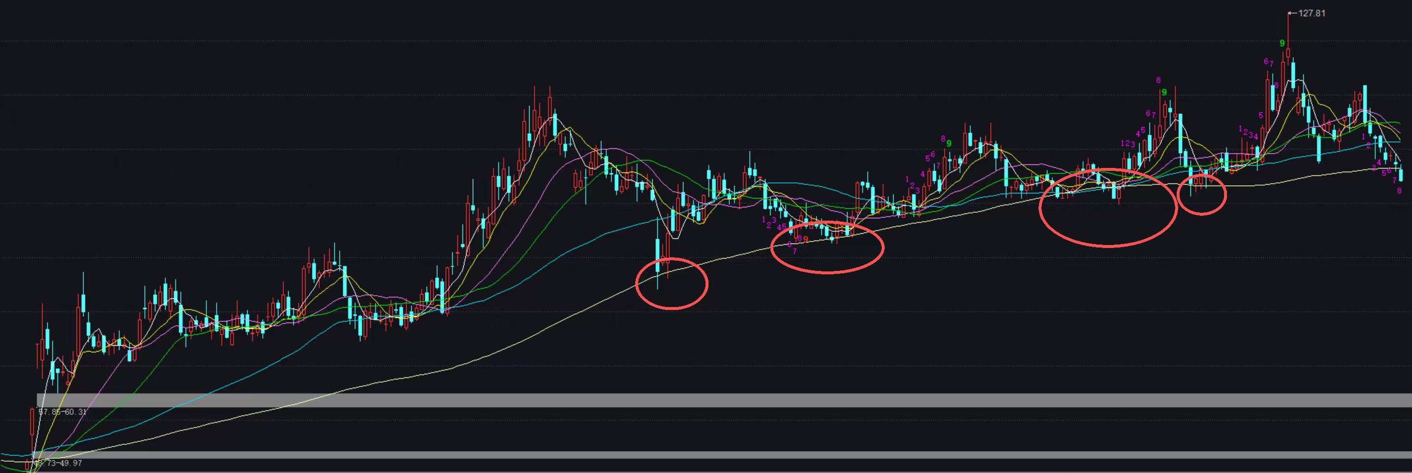最下面米色的125天线,在一年多的时间里,但凡破了,就有一把行情起来