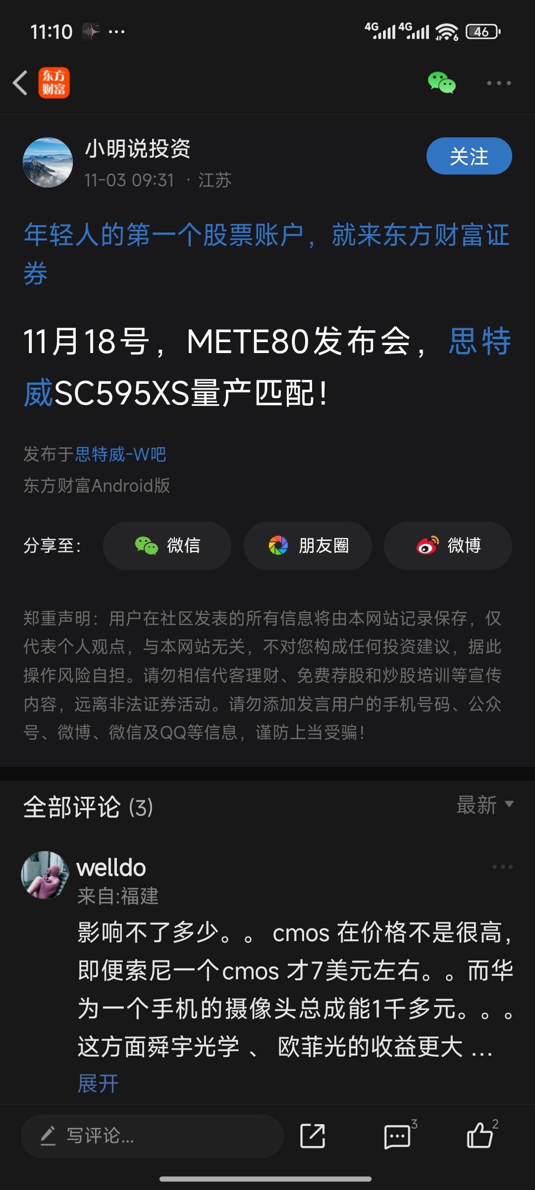 温馨提示: 1.根据《证券法》规定,禁止编造、传播虚假信息或者误导性信息,扰乱证券市场;2.用户在本社区发表的所有资料、言论等仅代表个人观点,与本网站立场无关,不对您构成任何投资建议。用户应基于自己的独立判断,自行决定证券投资并承担相应风险。《东方财富社区管理规定》