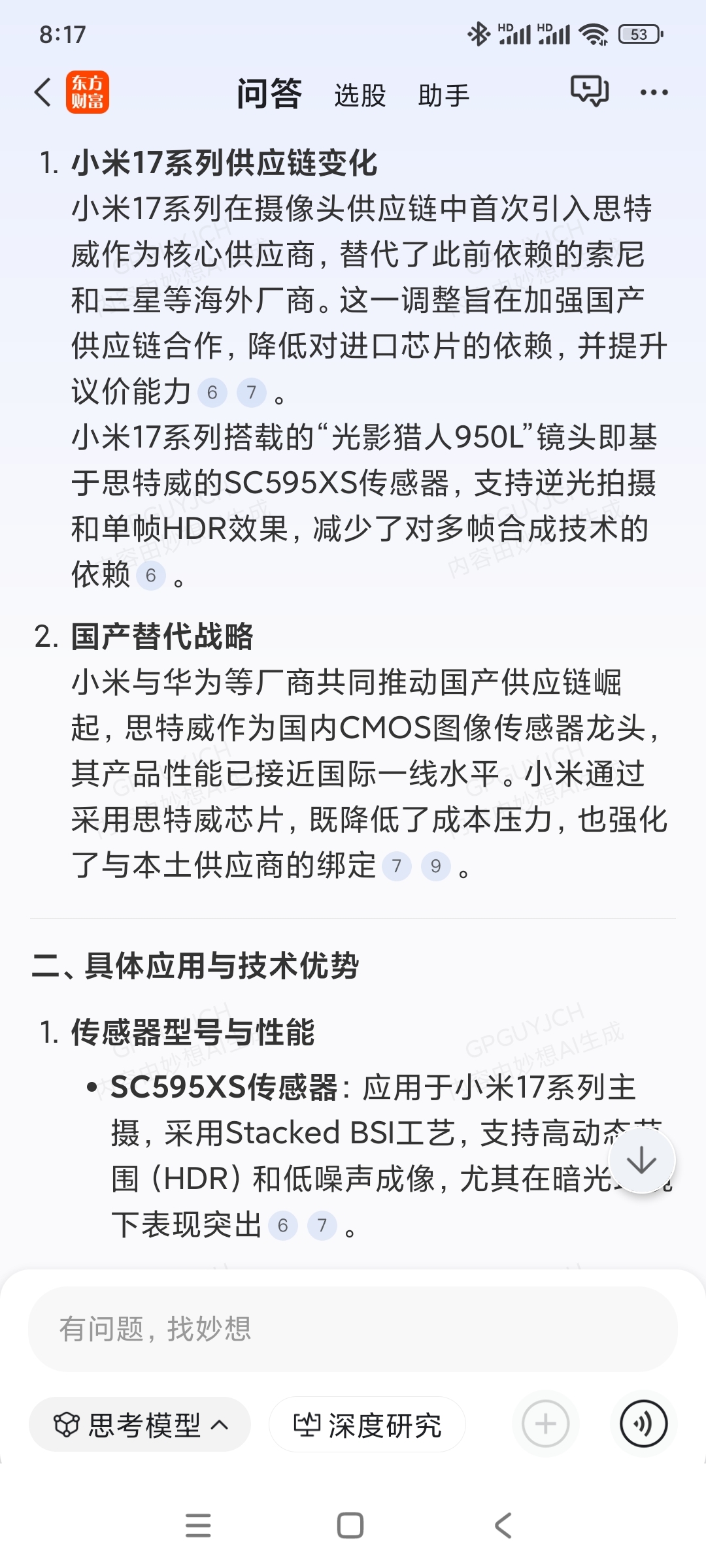 $思特威-W(SH688213)$ 思特威图像传感器芯片用于小米手机17