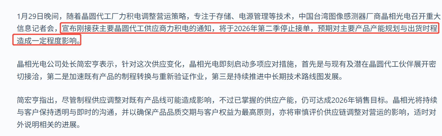 $思特威-W(SH688213)$ 力积电将要停止接单晶相光电的CIS产能,这对国内CIS 供应商是个利好,寻找替代产能良率和产能爬坡都有影响。