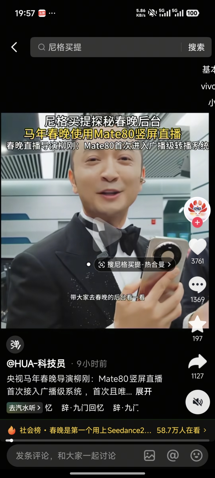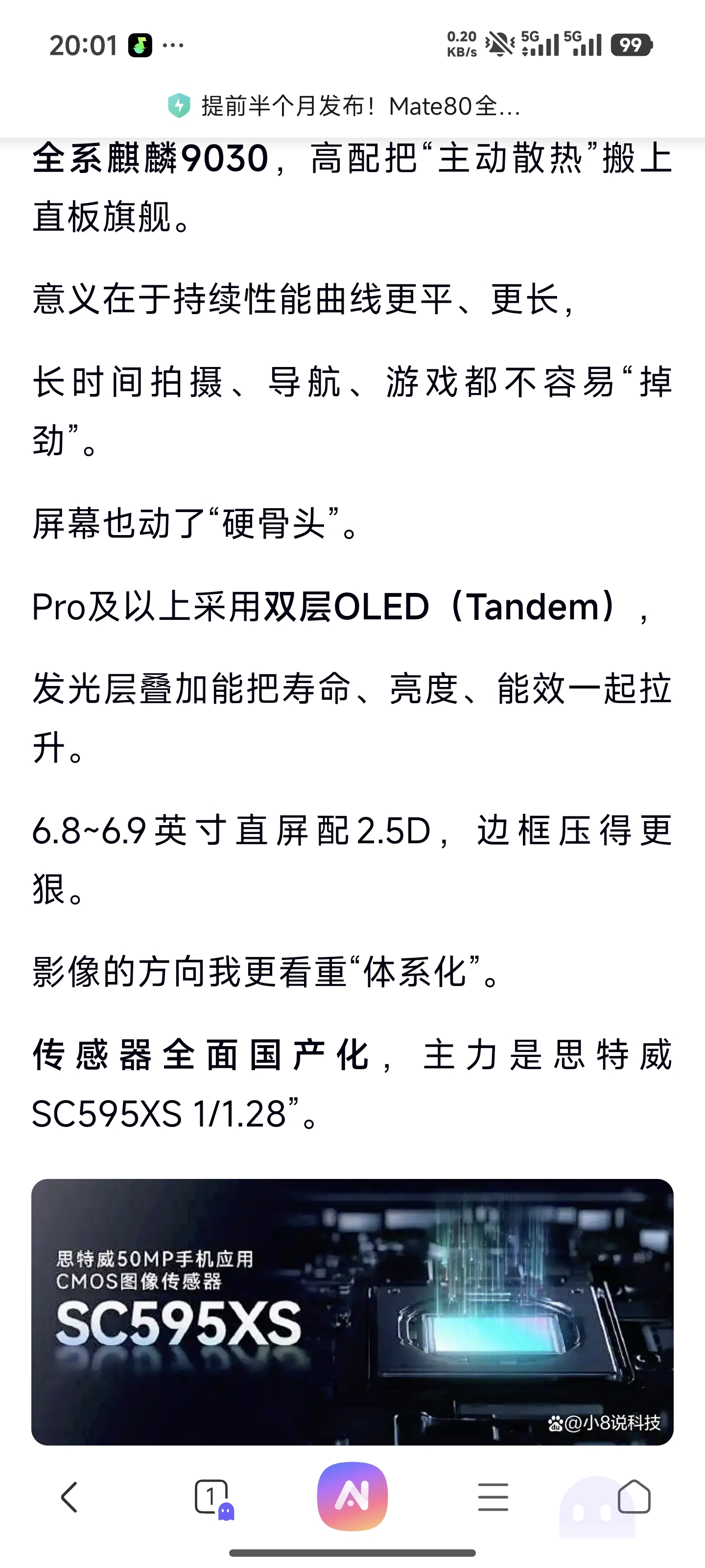 马年春晚使用华为Mate80竖屏直播,采用思特威sc595xs摄像头传感器。