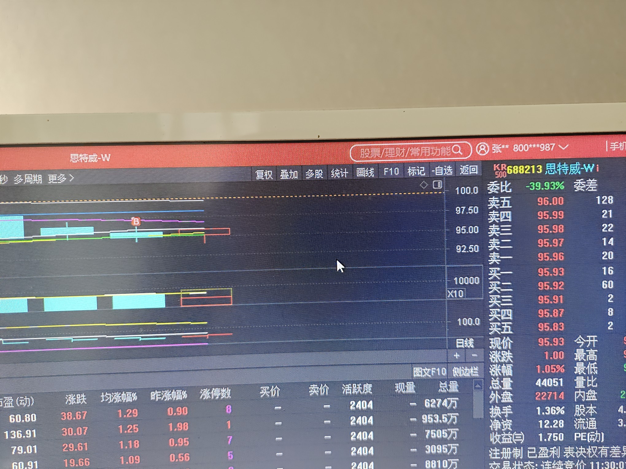 $思特威-W(SH688213)$ 昨天买了一点,今天挂的低一点没有买进,本来想今天做个T,现在难了。我是看了他前面两次三阴都阳线起来,昨天买了一点就是想今天在低吸的,反正这个票99.5就跑了。