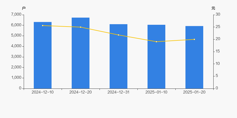 自2024年12月20日以来,公司股东户数连续3期下降,截至目前减幅为11.89%。2024年12月20日至2025年1月20日区间股价下降19.94%。