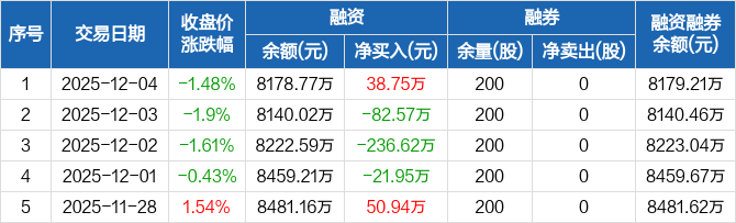 气派科技:融资净买入38.75万元,融资余额8178.77万元(12-04)