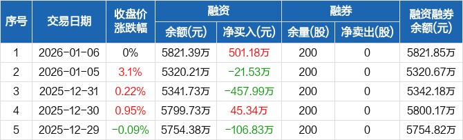气派科技:融资净买入501.18万元,融资余额5821.39万元(01-06)