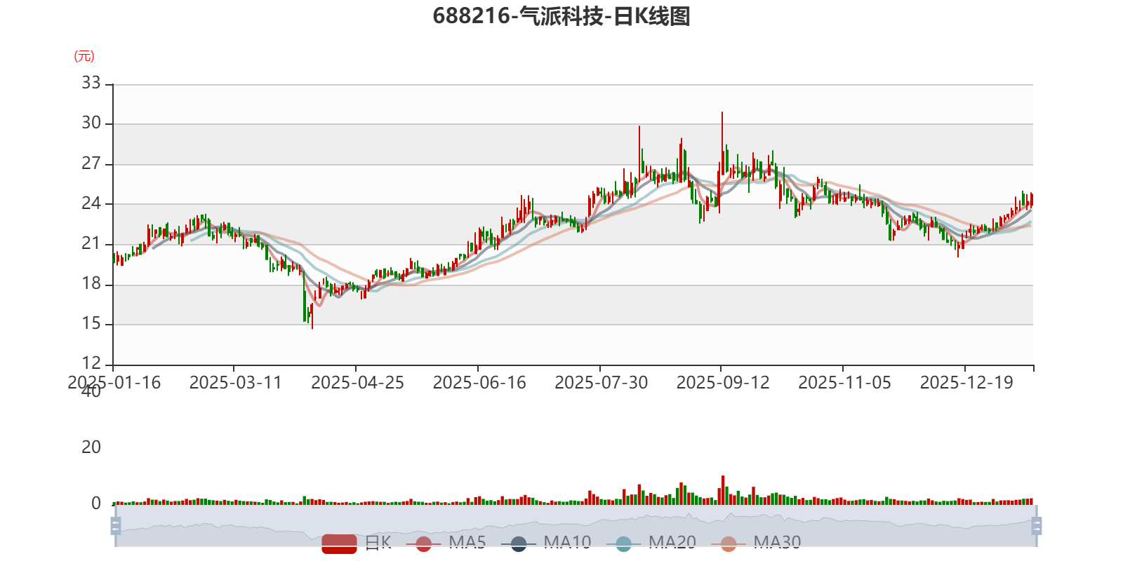 中证智能财讯气派科技(688216)1月15日晚间披露2025年度业绩预告,预计2025年实现营业收入7.6亿元,同比增长14.02%;归母净利润亏损8000万元,上年同期亏损1.02亿元;扣非净利润亏损9500万元,上年同期亏损1.21亿元。以1月15日收盘价计算,气派科技目前市盈率(TTM)约为-33.05倍,市净率(LF)约4.54倍,市销率(TTM)约3.48倍。