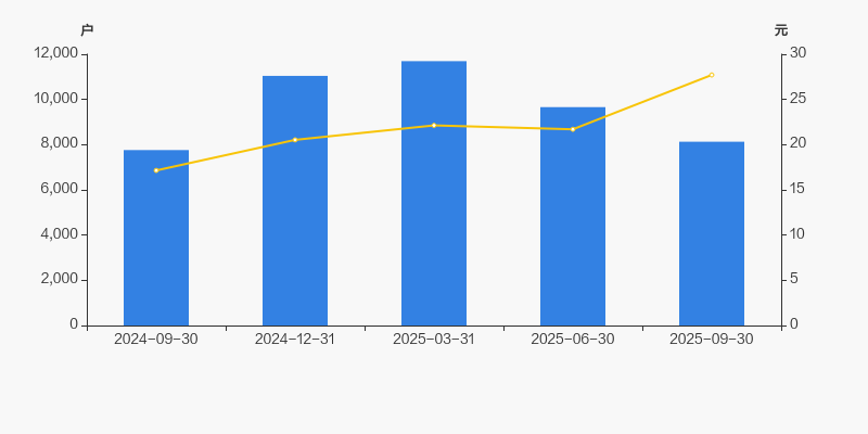 2024年9月30日至今,公司股东户数有所增长,区间涨幅为4.77%。2024年9月30日至2025年9月30日区间股价上涨61.58%。