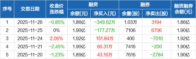 江苏北人:融资净偿还349.62万元,融资余额1.86亿元(11-26)