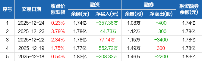 江苏北人:融资净偿还357.36万元,融资余额1.74亿元(12-24)