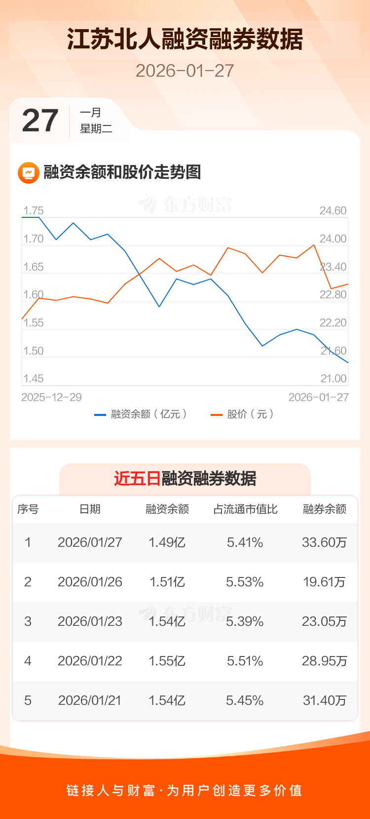 江苏北人:融资净偿还263.45万元,融资余额1.49亿元